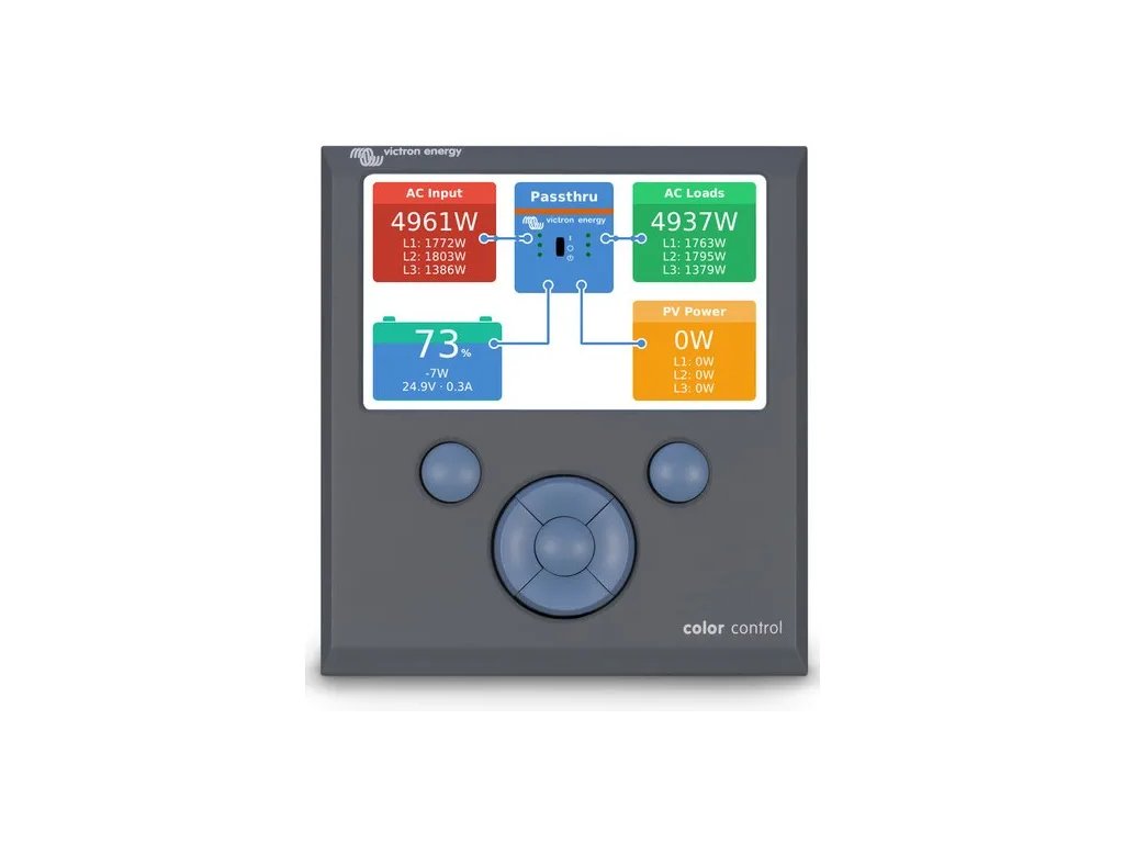 Color Control GX panel s nepřekonatelnou nabídkou možností, nově i s českým menu! Panel poslední generace s intuitivním ovládáním a přehledným sledováním vašeho systému. Možnost zapojení měničů Victron Energy řady Phoenix, měničů/nabíječek řady MultiPlus a Quattro, solárních regulátorů Blue Solar MPPT, sledovače stavu baterií řady BMV, nabíječky baterií řady Skylla-i, digitální multifunní panely 200/200A i 200/200A GX atd. Možnost napojení internetu přes ethernetový kabel. Možnost napojení Wifi, GPS (Global Positioning System), vzdálené sledování a komunikace a přenastavování sledovaných zařízení. Aktualizace firmwaru je možno provádět automaticky, pokud bude zařízení napojeno na internet nebo manuálně pomocí SD karty (není součástí zařízení). Možnost napojení a sledování jedno i vícefázových systémů.